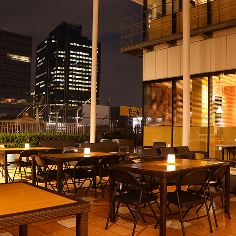 非日常的な開放空間で贅沢なひと時をお楽しみいただけます。最大50名様までテラス席へご案内可能となっておりますので、気の知れた仲間と少人数でのご利用だけではなく、会社宴会など大人数でもご利用可能です。お気軽にお問い合わせください。
