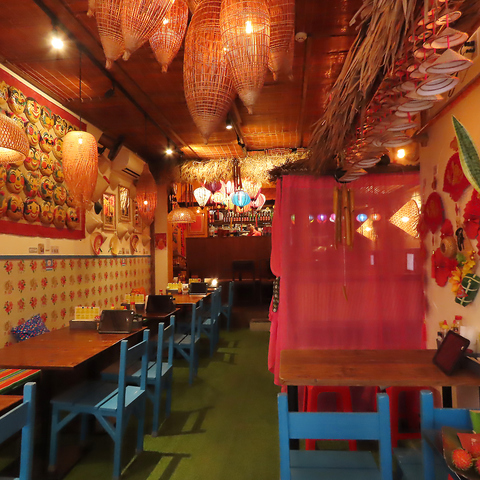 ベトナムの田舎のガーデンレストランをイメージした店内。20名様まで並んで利用可能