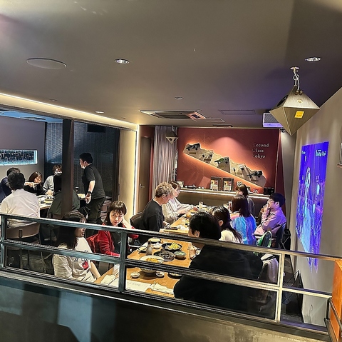 肉と魚SecondClassTokyoで和モダンかつスタイリッシュな大人の空間で、周囲を気にせずゆっくりワインを片手に和牛と鮮魚を味わう癒しの時間をお過ごしください。