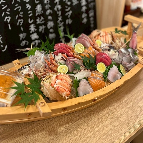 ・本日のおばんざい ・お刺身3種盛り合わせ ・串焼き2種 ・大分風とり天・明太子だし巻き ・〆のつけそば