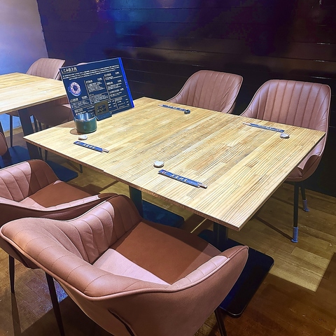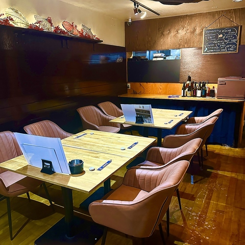 テーブルでゆったりとお食事とお酒を楽しむことができます。4名様席が3つございます。