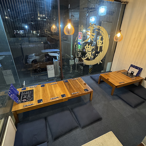 最大12名様までの座敷がございます。ガラス越しの雰囲気の良い座敷になり広々とお使いいただけます。