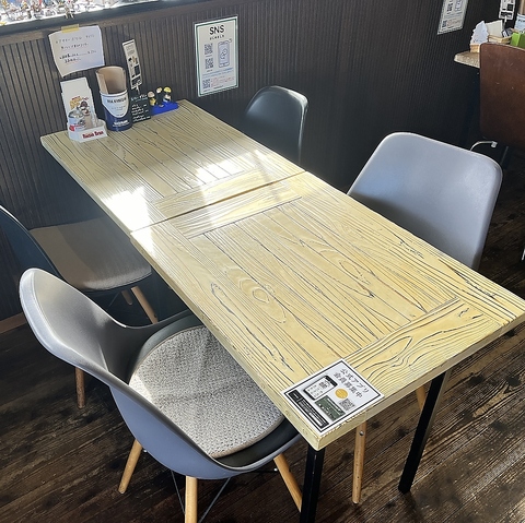 | テーブル | 1名様×4 | 4名席(2名、2名か6名席にもできます) |