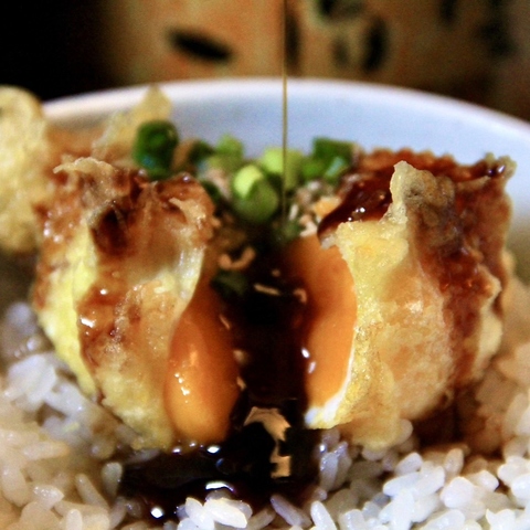 大人気半熟卵天を天丼にしました。甘じょっぱいタレが食欲をそそります!