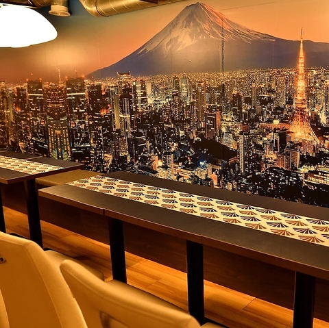 店内は温かみのある照明に照らされたモダンでお洒落な空間です♪ブラウンや黒を基調としたインテリアが、落ち着いた雰囲気を演出しております☆ゆったりと落ち着ける個室空間で、当店自慢の串天や逸品料理、美味しいお酒やドリンクを心ゆくまでお楽しみください◎仲間と美味しい料理とお酒を囲めば楽しい時間がもっと楽しくなること間違いなし★