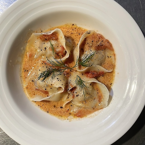 『ヨウサン』に来たら、まずはこれ!タネから手作りし、毎日丁寧にひとつひとつ包んだ餃子をイタリアンに仕上げた自慢の一品。もちもちの皮から溢れる肉汁を特製ソースと絡めてお召し上がりください。もちろんワインとの相性も抜群です◎