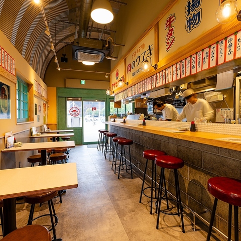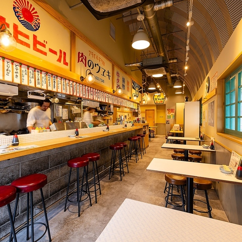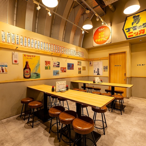 どこか懐かしい昭和レトロの雰囲気を取り入れつつ、剥き出しの天井がモダンな魅力あふれる店内♪昔から愛されてきたハイリキ片手にジューシーなメンチカツを頬張れば、昭和の世界に入り込んだかような気分を味わえます!活気あふれるスタッフの掛け声をバックに、肉とお酒を楽しむ充実のひとときをお過ごしください!