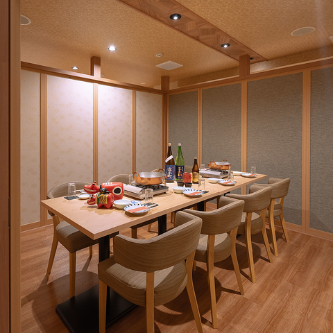 温かみのある個室空間はプライベートなシーンでのご利用に最適。ゆっくりお食事と会話をお楽しみください。