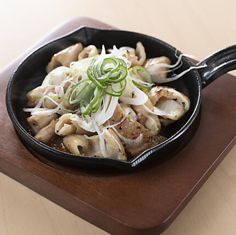鉄板でジュージューいっているホルモン焼きは、串で食べるシロとはまた別の味わい