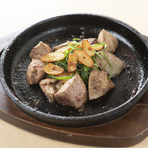 当店では、串焼きだけでなく、鉄板焼きでもホルモンやお肉を提供しております。なかでも、ゴロゴロ大きめにカットしたレバーを柔らかく焼きあげたレバーステーキがオススメです!しっとりした食感がクセになります!