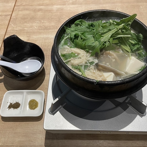 当店の鉄鍋スンドゥブは、豆腐をはじめ、エビ、タコ、牡蠣、豚肉といった豊富な具材を使用しています。それぞれの素材から出る旨みが溶け合い、深い味わいを生み出します。辛さは控えめにしているので、お子様から大人まで幅広い年齢層の方に楽しんでいただけます。生卵を加えることで、口当たりはさらにマイルドに♪