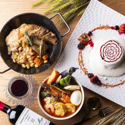 靴を脱いでくつろげるソファ席や、料理の盛り付けを美しく細部まで工夫を凝らしています。カウンター席はコンセント・USB完備で、カフェ以上に快適なひとときをお届けします。