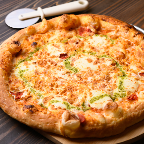 当店で楽しめる35センチピザは、仲間とシェアするのにぴったりなボリューム満点の一品です。生地は外はサクッと、中はモチモチの食感。様々なお味からお選びいただけ、お酒との相性も抜群。特に居酒屋ならではのアットホームな雰囲気の中で、楽しいひとときを過ごせること間違いなし。