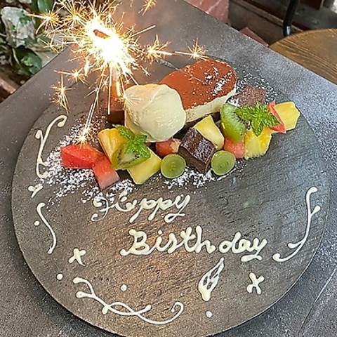 【サプライズも対応◎】大切なご友人・ご家族の「誕生日」そんな時にオススメの『記念日デザートプレート』♪事前にネット予約をいただければ、ご希望のメッセージやお名前でご用意いたします☆※ネットからのご予約時は備考欄に記念日(お誕生日、ご結婚など)とメッセージをご記載下さい♪