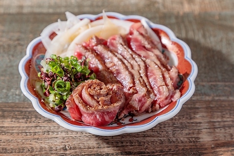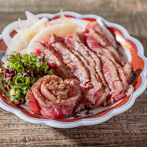 国産牛サーロインを贅沢にたたきにしています! ポン酢ベースのたれはあっさりで人気の一品です。