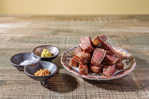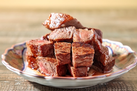 本格的な国産牛ステーキを使用。特に「積み上げステーキ」は、高級部位をリーズナブルに楽しんでいただきたいという想いから、赤字覚悟の価格設定で提供しています!柔らかいヘレや旨味たっぷりのサーロインを心ゆくまでご堪能ください。