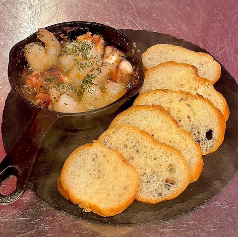 一番人気アヒージョ!香り立つガーリックとオリーブオイルが食欲をそそる!バゲット追加、続出中!おかわり注意!ワインとの相性抜群です♪全3種ご用意しております。迷った際にはお気軽にお尋ねください♪