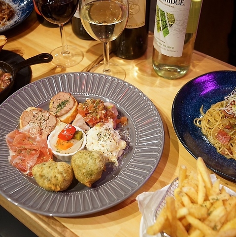 特別メニュー本日のパスタやアヒージョ、生ハム盛りなど、シェアしやすいメニューも豊富。手頃な価格でシェアしやすく、気軽な飲み会から女子会、デートにもおすすめ!映える内装と料理でSNS映えも抜群!