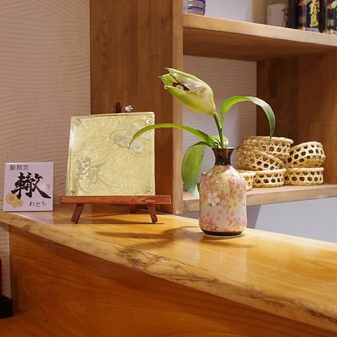 本格的な寿司をカジュアルに楽しめる『轍』では、気軽なランチやお一人様のお食事も大歓迎!カウンター席では店長兼料理長の光る職人技を眺めながらお食事をお楽しみいただけます。デートや接待の場としても最適◎