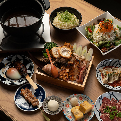 烏骨鶏を親に持つ本宮烏骨鶏・日南鶏などのブランド鶏を厳選。炭火で焼き上げることで香ばしさとジューシーさが際立つ逸品となっております。アラカルトも豊富に取り揃えておりますのでごゆっくりとお楽しみください♪