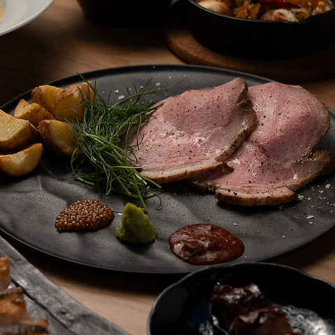 当店の名物の「自家製ローストポーク」は是非食べて頂きたい逸品です。こだわりの食材を贅沢に使用した名物はお食事のシーンを豪華に彩ります。吉祥寺でのデートや接待・飲み会は当店にお任せください。