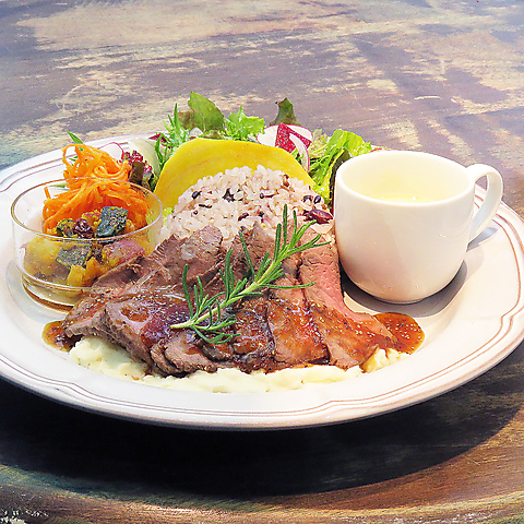 昼は、色彩豊かなランチプレートでお腹を満たします。わんちゃんメニューもご用意しております!