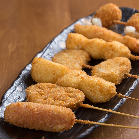 薄衣に細かいパン粉でカラッと揚げた串カツは、軽い食感で何本でもペロリ♪サクサクの食感がやみつきになる美味しさです!1本99円(税込)~とリーズナブルに楽しめるのも魅力。気軽に揚げたての味を堪能しませんか?