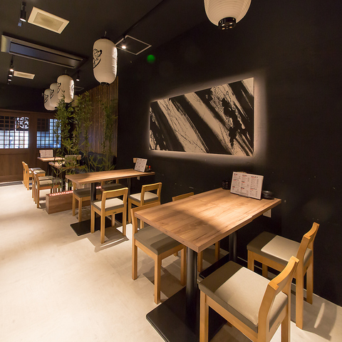 【テーブル席★】シックな和風テイストの落ち着いた店内には、2名様からご利用いただけるテーブル席を4卓ご用意。一見高級感のある雰囲気ながら、お料理はリーズナブルな価格帯でご提供しております。会社帰りのちょい飲みから、友人との食事、各種ご宴会まで、さまざまなシーンでお気軽にご利用ください。