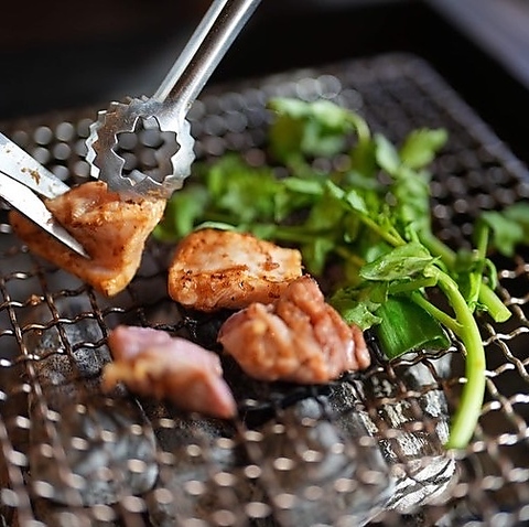 囲炉裏の温もりを感じながら、炭火でじっくり焼き上げた軍鶏やお野菜をお召し上がりいただけます。