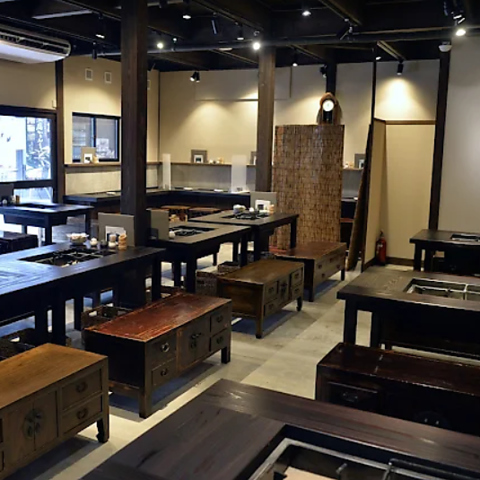 全席囲炉裏を囲むお席をご用意しており、4名様用が5卓、8名様用が2卓ございます。複数の卓を組み合わせることで、さまざまな人数に対応可能です。また、外席も完備しており、ペット同伴もOKです。大切な方々と一緒に、囲炉裏の温もりを感じながら、贅沢なひとときをお過ごしください。