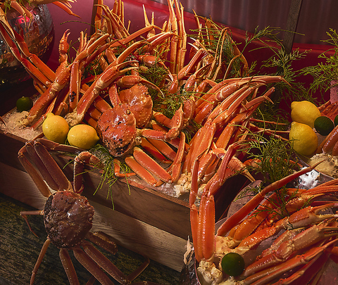 毎年大好評を頂いている本ズワイガニ食べ放題のカニビュッフェ。蒸しガニに加え、焼きガニもご提供しています。さらに、カニをふんだんに使った本場タイのプーパッポンカレーをはじめとする本格タイ料理もお楽しみ頂けます