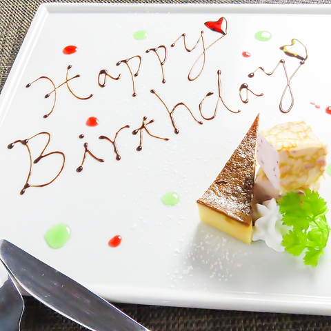 歓送迎会や記念日に!メッセージ付きデザートをご用意しております。素敵な1日をぜひ当店で♪