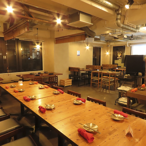 1階はカウンターとテーブル席、2階にはテーブル席と個室、3階には立食パーティールームを完備。どのフロアも広々とした開放感が自慢です。1~2階のカウンター・テーブル席は、おひとり様の食事から女子会やご宴会まで幅広く対応。壁にはハングル文字の装飾が施され、本場の韓国気分を味わいながら、賑やかに楽しい時間をお過ごしいただけます♪
