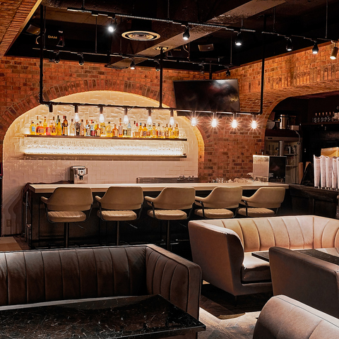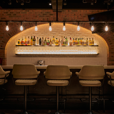 六本木通りに面した洗練されたエントランスの向こうには、ダウンライトが優しく照らす上質な空間。レンガ造りの重厚な雰囲気と木製調度のぬくもりがマッチ。カウンター席やテーブル席だけでなく個室も用意しており、デートや歓送迎会、パーティーなどさまざまなシーンでご利用いただけます。
