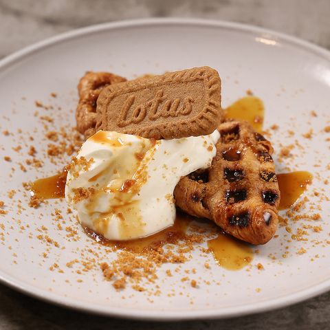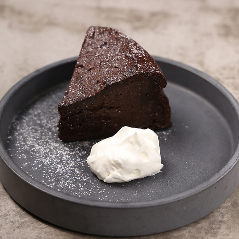 「濃厚で甘さ控えめに仕上げたガトーショコラは、男性からも支持される大人のデザート。ビターなチョコの奥深い味わいは、香り高いコーヒーや紅茶とも相性抜群。食後やひと休みの時間に贅沢な満足感を与えてくれる一皿です。」