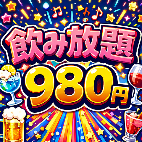 17:00~22:00ご来店のお客様、2時間飲み放題980円でお楽しみ頂けます