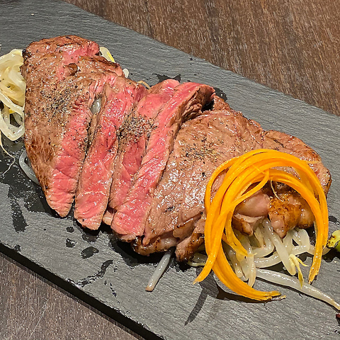 自家製ローストビーフステーキ(120g)とグリルチキンのコンビ