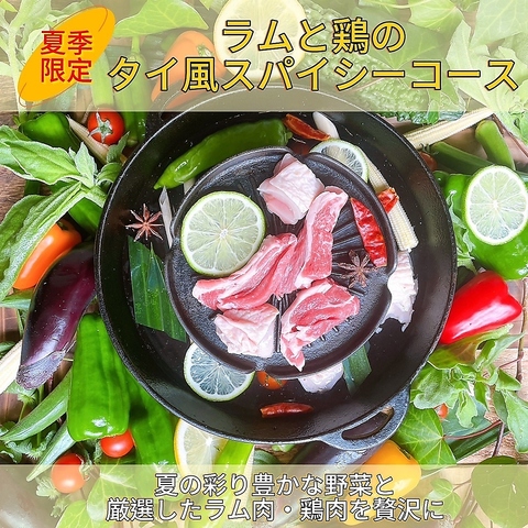 ラムと鶏肉のタイ風スパイシーソースのコースです!暑い夏に是非限定コースをお楽しみくださいませ♪