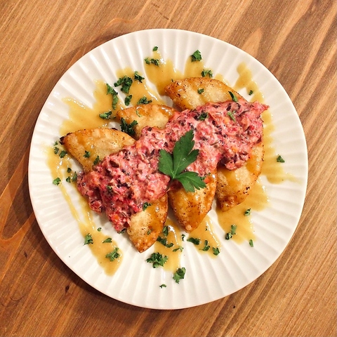 香ばしく焼き上げた自家製餃子をたっぷりと盛り合わせました。外はカリッと、中はジューシーな餡がぎっしり詰まった一品です。噛むたびに旨味が口の中に広がり、ビールや日本酒との相性も抜群で、友人や家族とシェアして楽しめる定番メニューです!