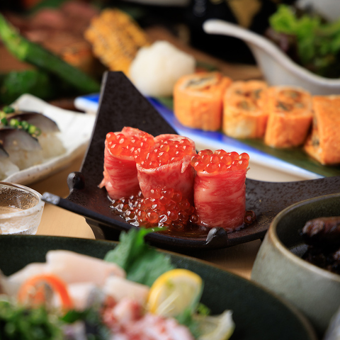 とろけるような口当たりの知多牛に、宝石のように輝く新鮮なイクラがこれでもかと溢れる、贅沢の極み。口にした瞬間、肉の旨味とイクラのプチプチとした食感が織りなすハーモニーが口いっぱいに広がります。厳選された知多牛の赤身と脂身のバランス、そして大粒のイクラの塩気は、日本酒との相性も抜群です。特別な日のご褒美に、また大切な方との食事に、忘れられないひとときを演出します。