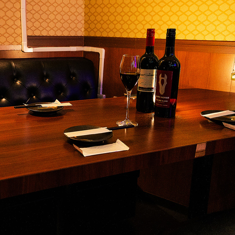 料理長が自信をもって目利きし厳選したお肉は他では味わえない逸品。柔らかな肉質と溢れ出る肉汁、口の中に広がる旨味に思はず笑みがこぼれるほど◎ゆったり寛げる半個室席で至福のお時間をお過ごしください。シェフ自慢の自家製ローストビーフとを楽しむご宴会プラン♪柔らかいローストビーフとワインの相性は抜群です!