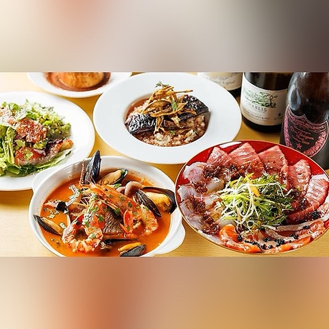毎朝、船橋市場から仕入れた新鮮な魚介類を使用。鮮魚のカルパッチョ、牡蠣など旬の食材をご提供いたします