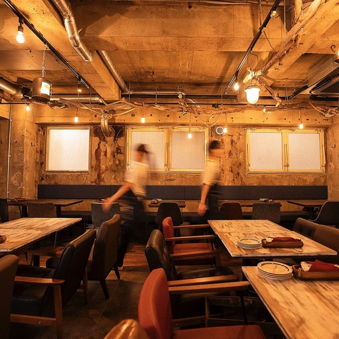 居心地の良さをウリにしております。かわいいインテリアを眺めながらゆったり時間を過ごしませんか?開放感のある広々としたフロアは、40名様から貸切利用も可能。会社宴会や結婚式二次会など、大人数での集まりにも柔軟に対応できます。