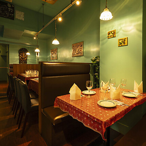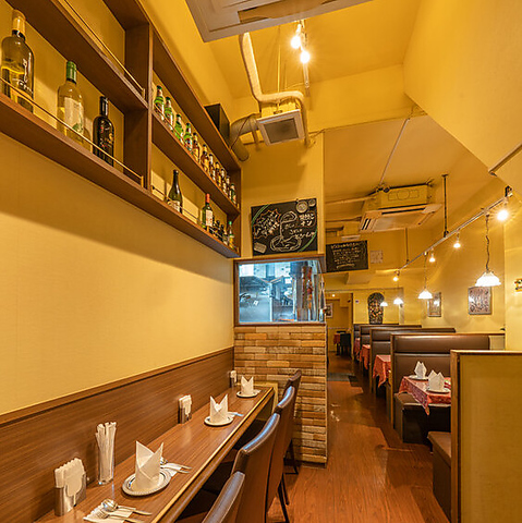 【つい長居したくなる空間】温もりと深みがある店内で素敵なひとときを。全体的に暖色系と落ち着いたトーンに各席に設置しているテーブルランプが空間に陰影と奥行きを演出します。スパイスの香りと共にモダンながらも心地良い「温かみのある空間」をお過ごしください。