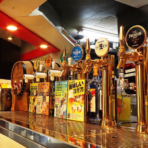 お洒落で素敵なドリンクカウンターには、4種の樽生ビールサーバー(サントリー生ビール/プレミアムモルツ香るエール/プレミアムモルツ黒/カールスバーグ)、ワイン、特製サングリア、ウイスキー、100種以上のカクテルをご用意しております♪お得なスタンダード飲み放題プランもご用意。