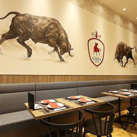 カジュアルな雰囲気と共に、店内に描かれたアートも当店の魅力。某人気デザイナーさんが手掛ける“牛の絵”はインスタ映え間違いなし。最高の焼き加減でご提供するシュラスコ20種をテーブルに持って回って参ります。焼きたてのシュラスコを専用トングで掴む楽しさは随一の臨場感。接待や会食等でも気兼ねなくご利用頂けます