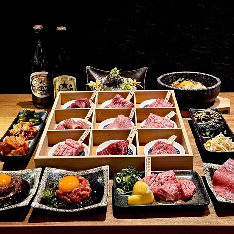 当店では、店主がその日の目利きで厳選したおすすめの銘柄牛と部位をご用意しています。和牛ユッケをはじめ塩焼き&タレ焼き…など定番メニューから和牛タン、厳選ホルモン盛り合わせ、デザートまで、満足必至です。 歓送迎会、仕事帰りや飲み会、女子会等各種宴会のお食事の際にぜひ極上の和牛をお楽しみください。※飲み放題のラストオーダーは90分です。
