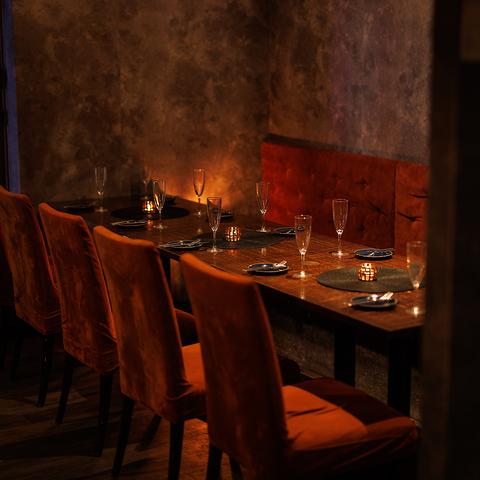 完全個室で、周囲を気にせず会話と料理を楽しめる特別席。記念日デートやプロポーズ、クローズドな接待にも重宝されるプライベート空間です。