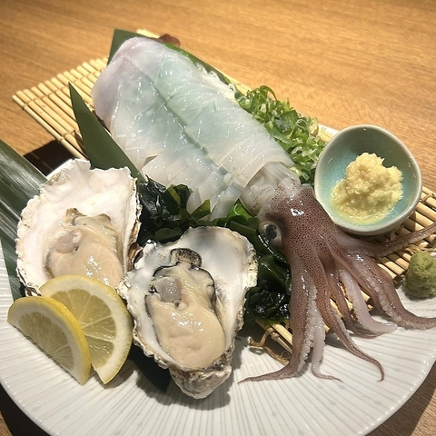 完全数量限定!鮮度にこだわり抜いた白イカの姿造り&岩牡蠣!この時期おすすめの一品!ぜひご注文ください◎