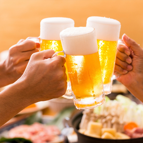 ビール、サワー、ハイボール、カクテル、梅酒、焼酎、日本酒、ソフトドリンクなど約60品の飲み放題も◎